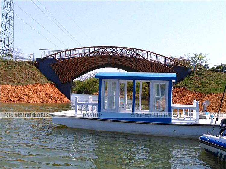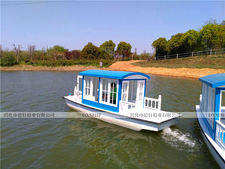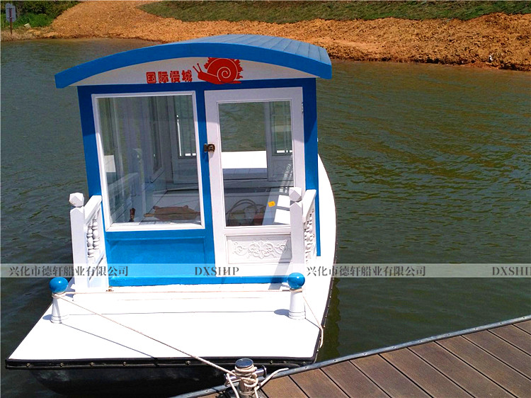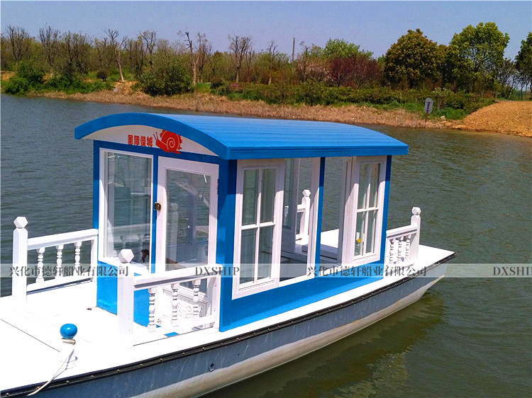 5.0米观光船规格:5.0*1.8m核载:6人使用区域:B、C级航区(水库、人工湖、内河)材质:船体板材:4cm厚进口花旗松龙骨:非洲银口、冰糖果木船体防护:10层高分子无碱玻璃纤维布(免维护)电动配置:电机:1.5KW*1台(永磁无刷)航速:3~6Km/h续航:根据要求搭配电池汽油配置:两冲程40匹(雅马哈后舷机)