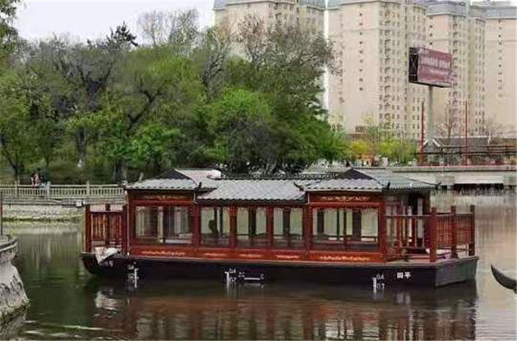 画舫船就是装饰古典华丽的游船,是“中国风”的仿古游船,结合古典园林建筑,体现了中华文明的古典艺术。