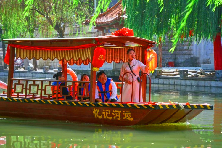 水上项目东起东大寺,西至会通桥,全长约1.6公里,水上设置摇橹、画舫游船供游客漫游老运河。